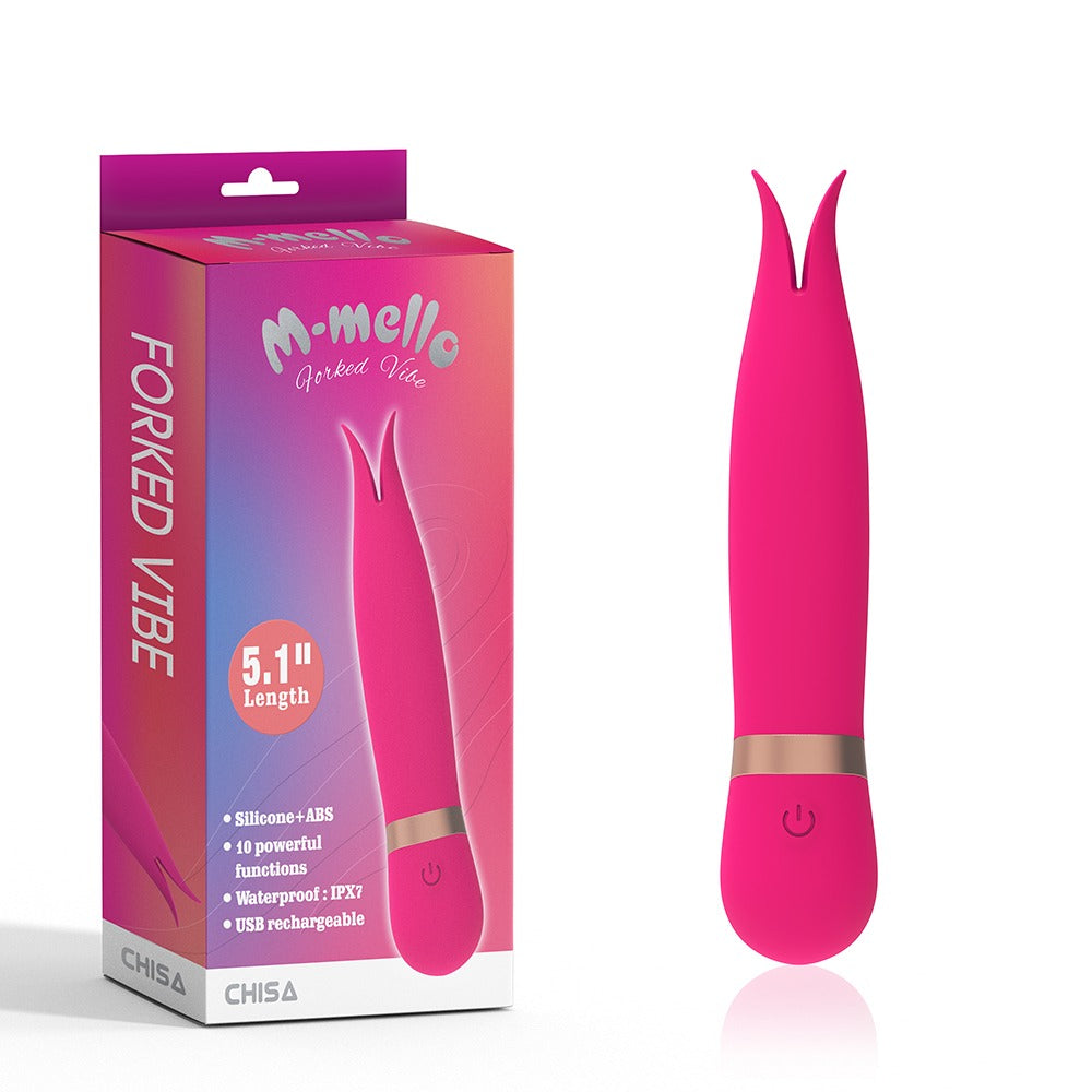 The M-Mello Rechargeable Forked Vibe offers 10 powerful vibration functions designed for versatile and customizable stimulation. Crafted without phthalates and latex, it ensures a safer and hypoallergenic experience. With an IPX7 waterproof rating, this vibe is fully submersible, allowing for easy cleaning and use in a variety of settings. Rechargeable and user-friendly, it combines safety, convenience and performance for expert-level pleasure.
