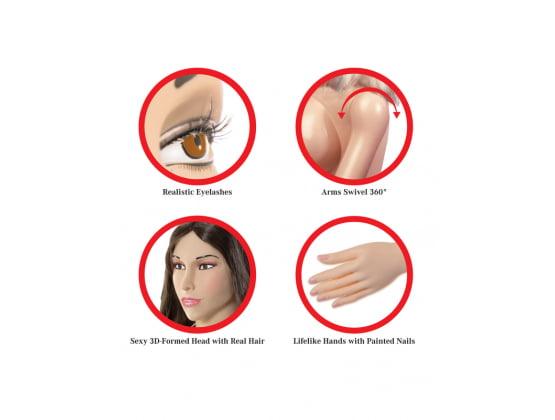 This incredible life-size inflatable love doll was meticulously designed with realistic features for a truly lifelike experience. Already situated on her knees, she's in the perfect position for deep doggy-style penetration. Her sexy 3-D formed head features realistic eyelashes and a luxurious head of real hair that's begging to be pulled! Watch her really come to life with arms that swivel 360 degrees and delightfully painted finger and toenails. Give her firm and perky breasts a squeeze while you enjoy her ultra-lifelike Fanta-Flesh™ pussy, and ass that feels even better than the real thing! The Fanta-Flesh™ pussy and ass are removable for easy in-depth cleaning, and can even be enjoyed separately for masturbation. An inflation pump, vinyl repair kit, and instructions are conveniently included.
