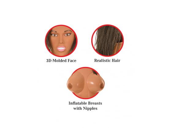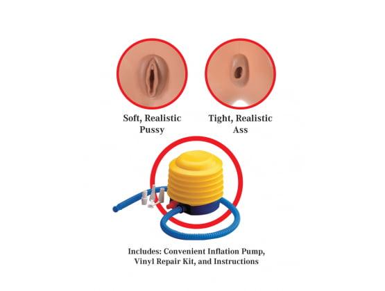 It's true, Latina chicas are muy caliente and I'm hungry for some hard-dick hombres! My perfect panocha, grande chi-chis, and cute little culo are waiting for your pito! You've always dreamt about fucking a super-curvy Latina cutie, so what are you waiting for? I want to swallow your hot sauce while you cover me with your crema! And don't worry about me getting knocked up like the rest of my homegirls--you can cum deep inside me without worrying about a thing!" This incredible life-size inflatable love doll was meticulously designed with realistic features for a truly lifelike experience. Her sexy 3-D molded face is topped with a luxurious head of hair that's begging to be pulled! Give her perky breasts a squeeze and enjoy her super-soft and lifelike nipples. Her lifelike pussy and super-tight ass feel even better than the real thing! An inflation pump, vinyl repair kit, and instructions are conveniently included.