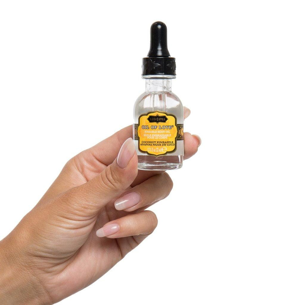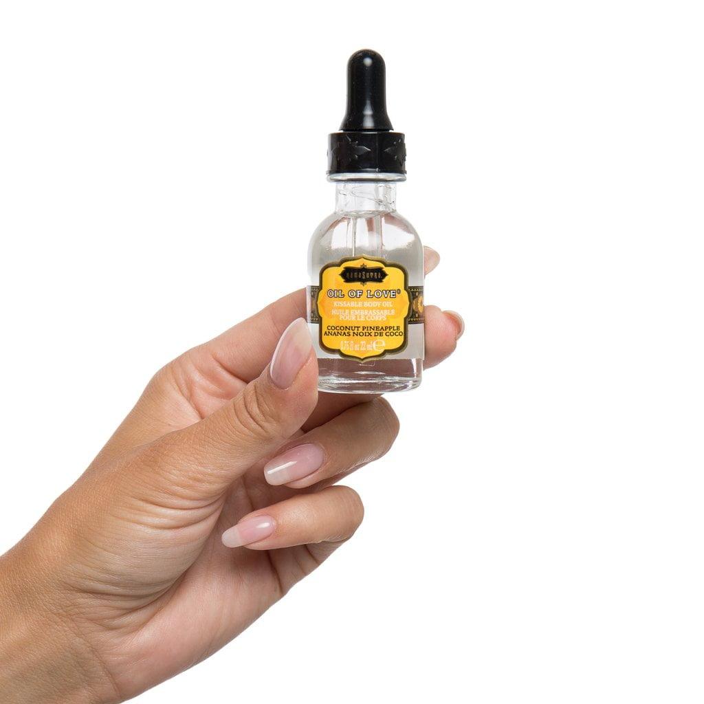 - Oil of Love: Coconut Pineapple - Kissable, water-based body oil. Size: .75 fl oz (22 ml)